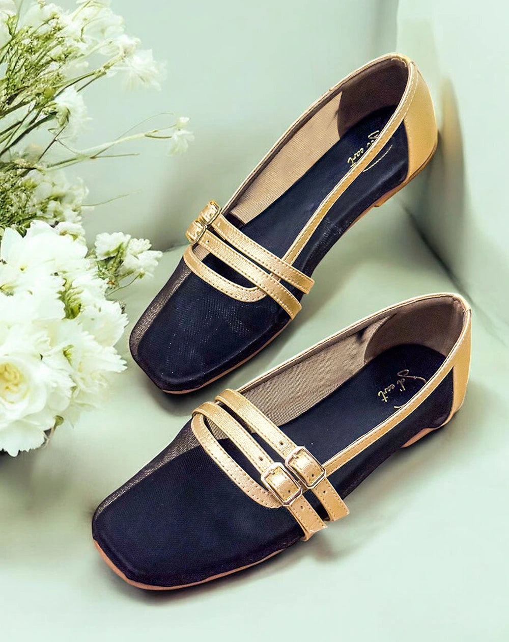Dark, sleek, and endlessly versatile, the Anna Ballerina in black blends timeless grace with a modern edge. The mesh encasing adds texture and intrigue, while two delicate straps keep the look refined. A true wardrobe classic with a bold, contemporary twist.