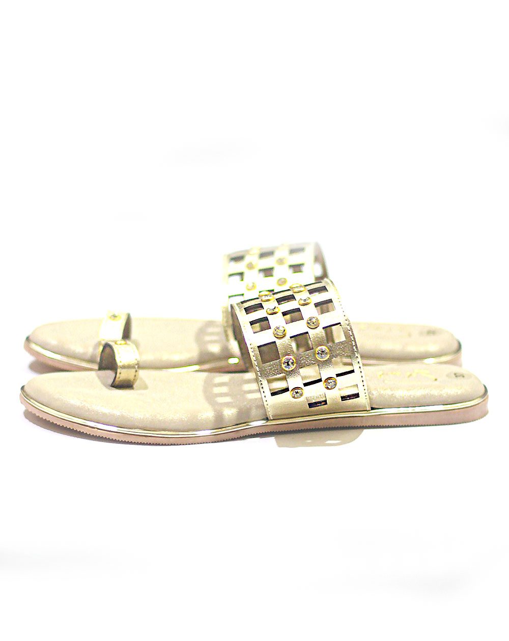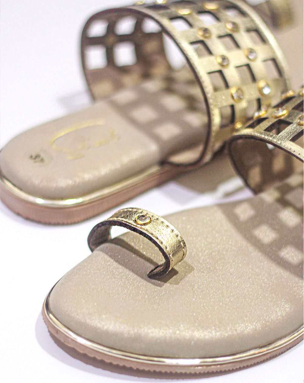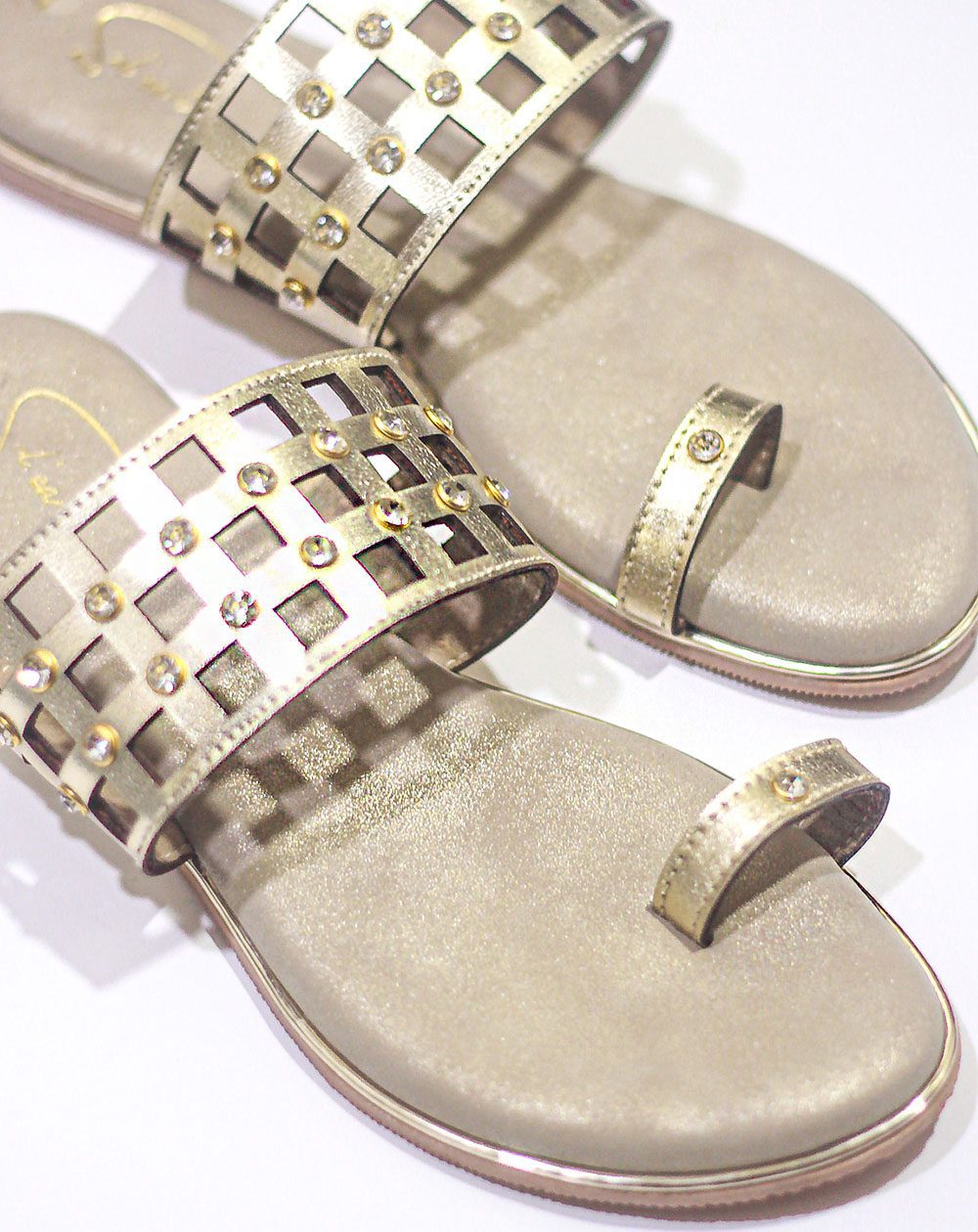 This light gold metallic pair features a toe holder and and geometric cutwork strap that is adorned with stones. While it looks minimal and elegant, it has the power to...