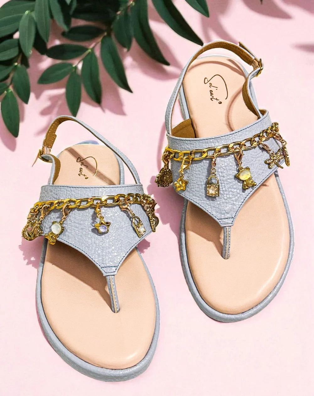 Cool, confident, and unapologetically bold, Betty Blu brings the statement energy you didn’t know your shoe rack needed. With its soft blue tone and a shimmering gold chain that’s ready for your mix of charms, this mule lets you make your own fashion story. Comes with 5 fun, random charms because why settle for ordinary when you can wear your personality?
