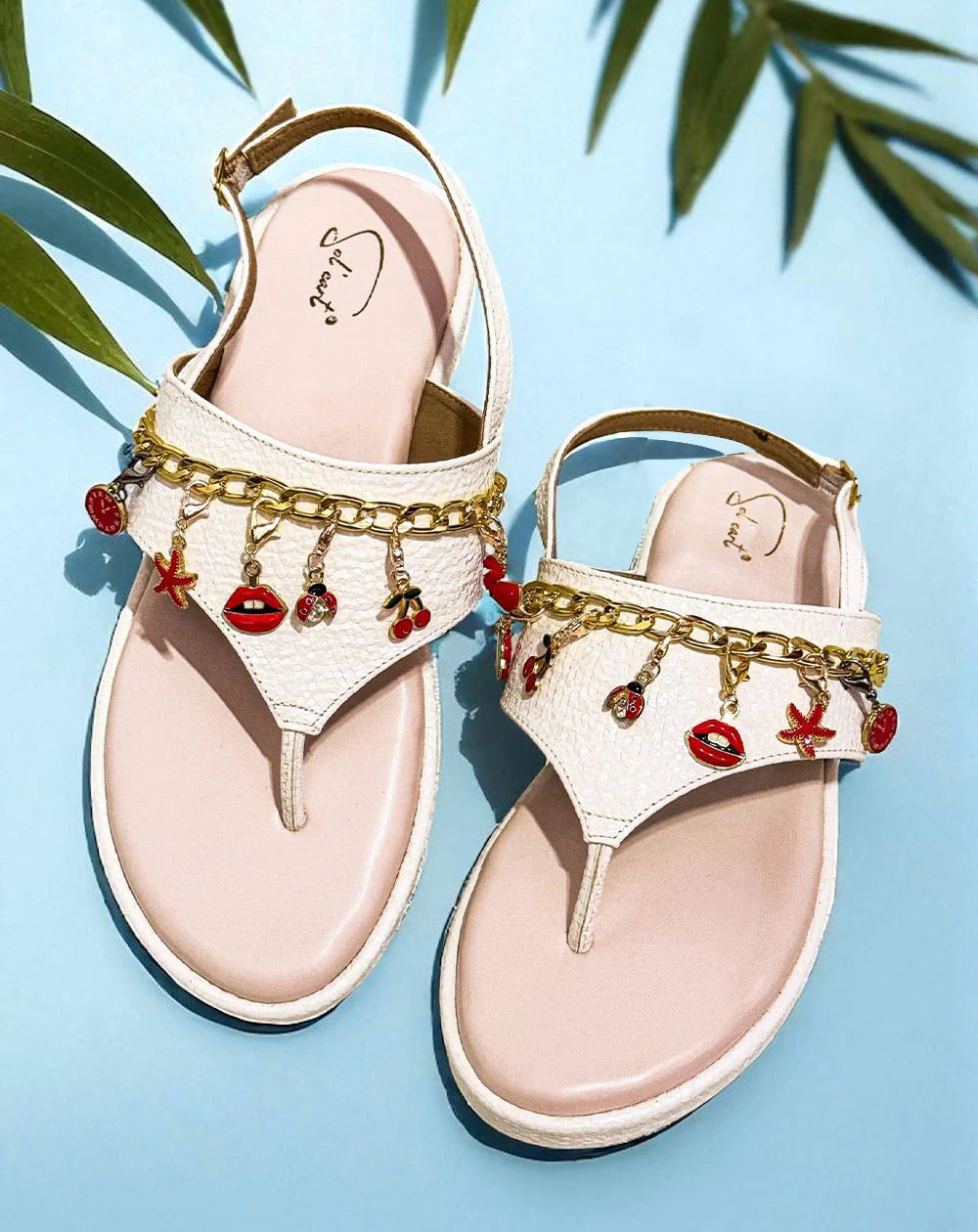 Polished, playful, and effortlessly chic, Betty Nuit is your go-to white mule with a twist. Its sleek open-toe design gets a glam upgrade with a gold chain detail at the front, perfect for linking your favourite charms. Each pair comes with 5 surprise charms, making every step a little more you. Whether it’s brunch or business, Betty Suit means you’re always dressed to charm.