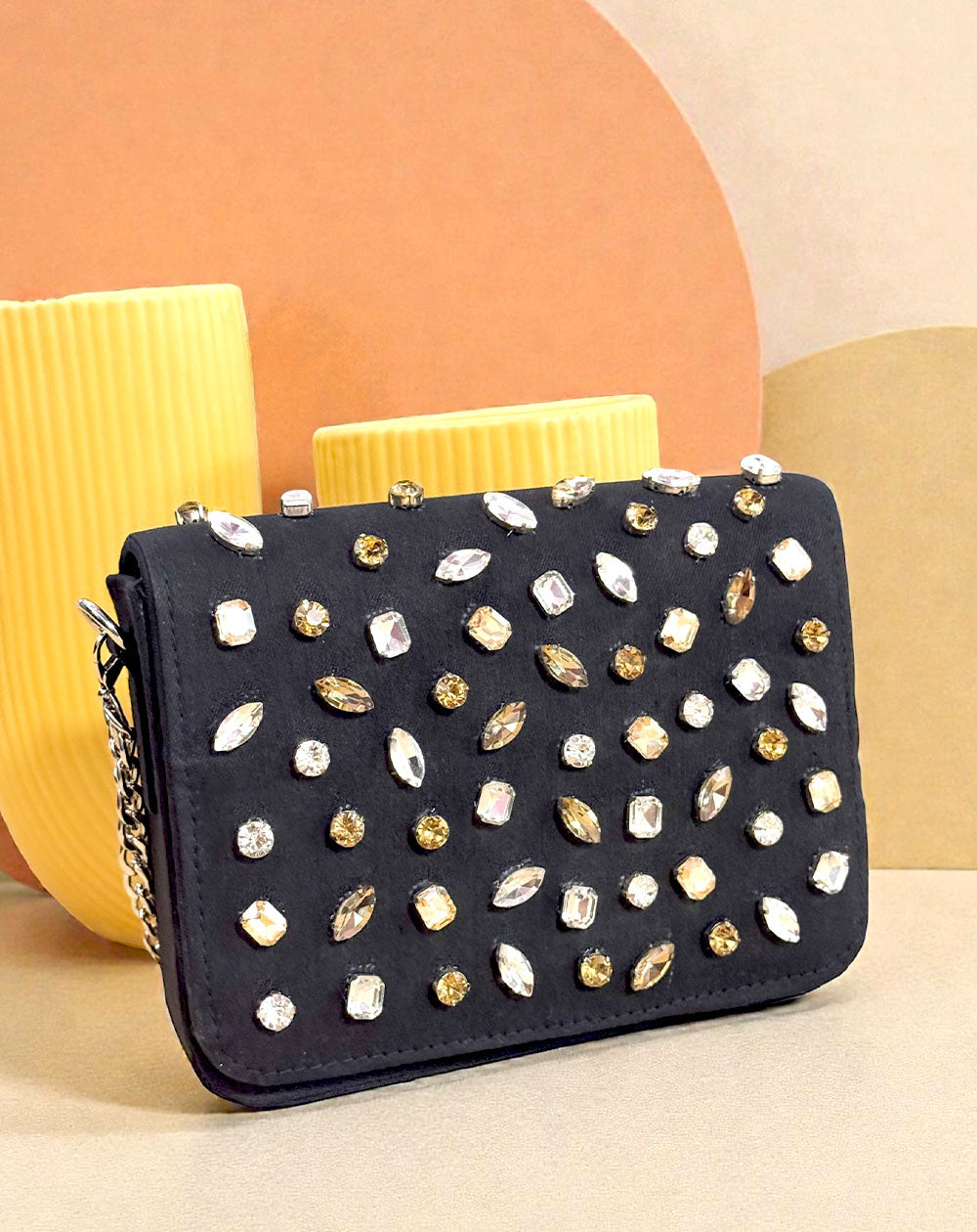The Starlight Denim Black steps in with a cool, city–night attitude. Its black denim base keeps things grounded and effortless, while the gold stones scatter across the surface like tiny...