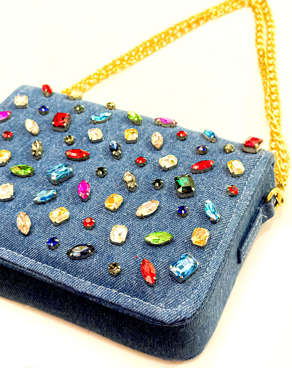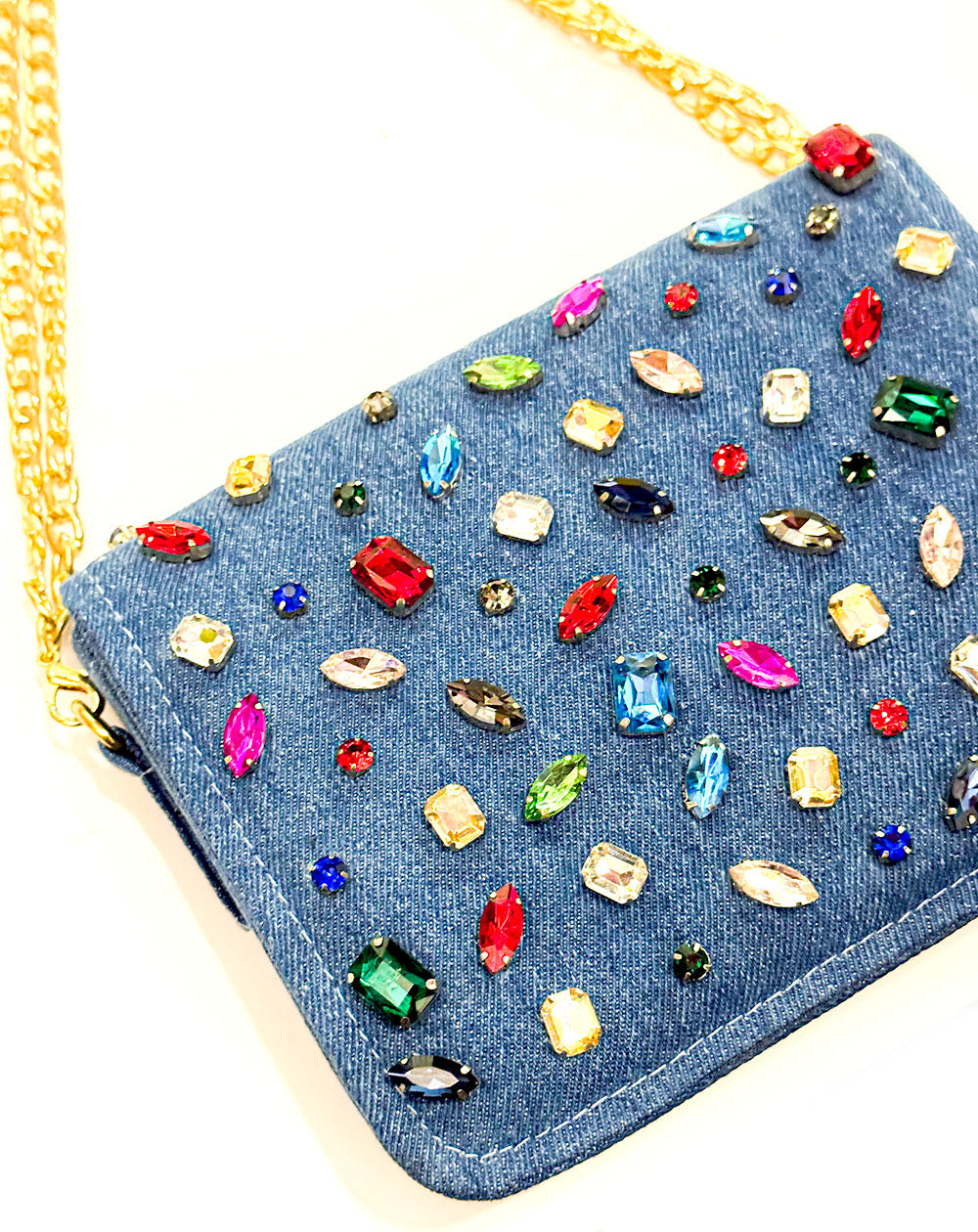 The Starlight Denim Dark Multi sling brings a burst of attitude to classic blue denim. Multicolour stones scatter across its surface like sparks from a neon night, giving it a...